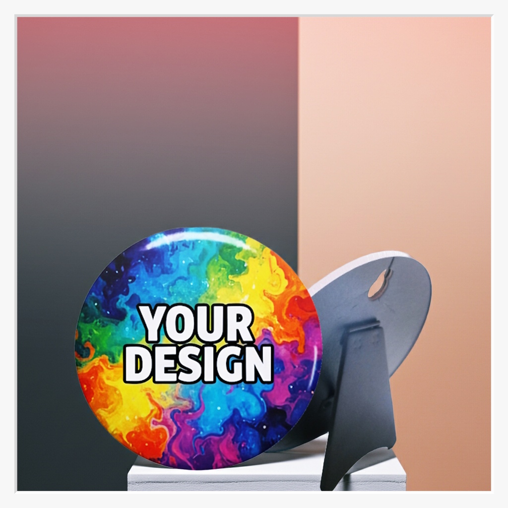 Ein Produkt dieser Größe benötigt eine entsprechende Basis. Der 158 mm Fotoständer überzeugt durch seine massive Bauweise und den hochwertigen, ausklappbaren Metallfuß auf der Rückseite. Die enorme Fläche erlaubt es, auch hochauflösende Fotos, komplexe Collagen oder detaillierte Botschaften in einer Qualität zu präsentieren, die man sonst nur von gerahmten Bildern kennt – jedoch im einzigartigen Button-Look.