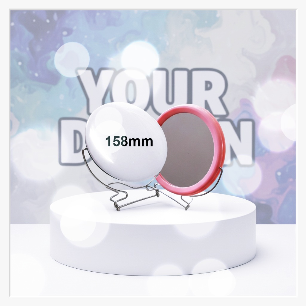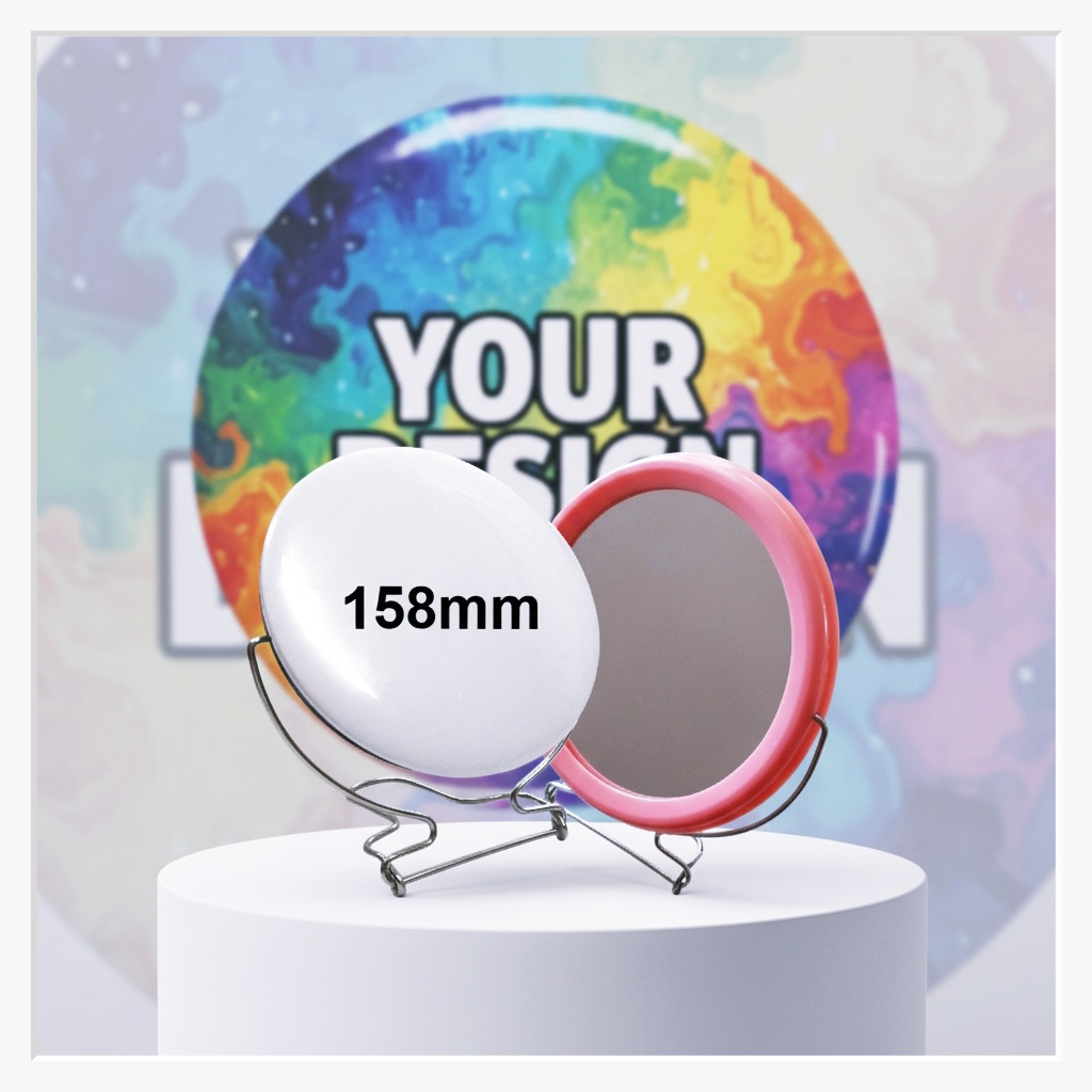 Setzen Sie neue Maßstäbe in Ihrer täglichen Routine. Unser 158 mm Button mit Standspiegel ist das absolute Flaggschiff der Buttonschmiede. Mit einem Durchmesser von fast 16 cm bietet er ein Sichtfeld, das weit über herkömmliche Taschenspiegel hinausgeht. Durch den verchromten, stufenlos verstellbaren Fuß wird dieser Button zu einem professionellen Kosmetik- und Rasierspiegel, der auf jedem Tisch eine glänzende Figur macht.