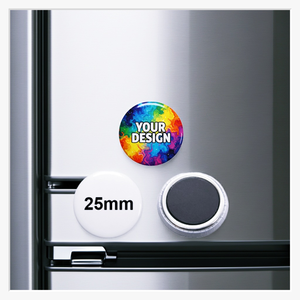 Hol Dir Deine schönsten Momente direkt an den Kühlschrank: Unser kleiner 25mm Magnet mit Soft-Rückseite ist perfekt für Fotos, kleine Sprüche oder Deine ganz persönliche Kunst – und dabei so sanft, dass er garantiert keine Spuren hinterlässt.