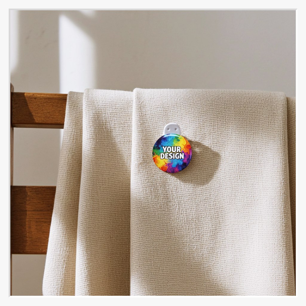 Das Besondere an diesem Modell ist der 360 Grad drehbare Clip auf der Rückseite. Egal, in welchem Winkel Sie den Button anbringen – Ihr Motiv lässt sich immer perfekt waagerecht ausrichten. Das macht ihn zum idealen Begleiter für Messen, Firmen-Events oder als dezentes Namensschild im Berufsalltag.