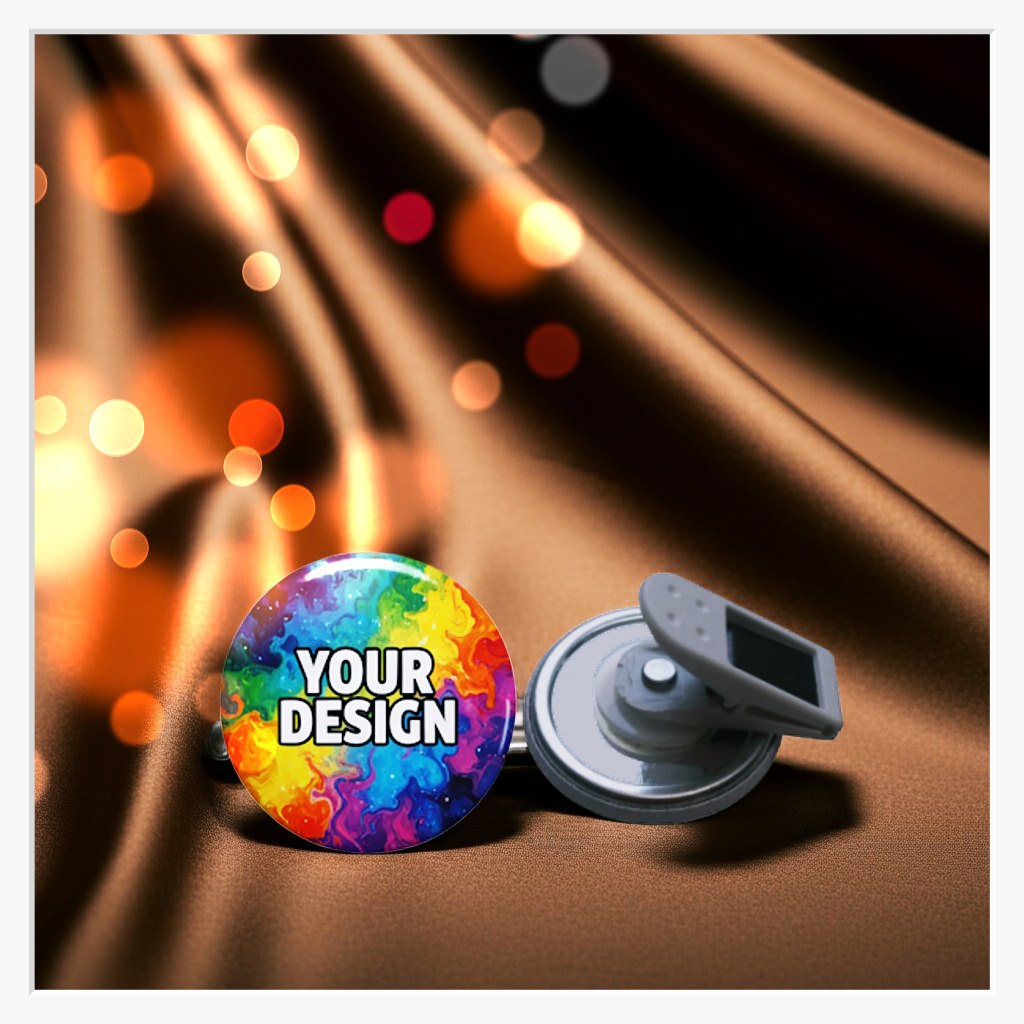 Wenn Sie Wert auf eine professionelle Präsentation legen, ohne feine Stoffe zu beschädigen, ist der 32 mm Button mit Clip-Verschluss die ideale Wahl. Durch den Verzicht auf eine Nadel bleibt Ihre Kleidung absolut unversehrt. Der Clip lässt sich einfach an Taschen, Revers oder Hemdtaschen befestigen und bietet dennoch einen festen, zuverlässigen Halt.
