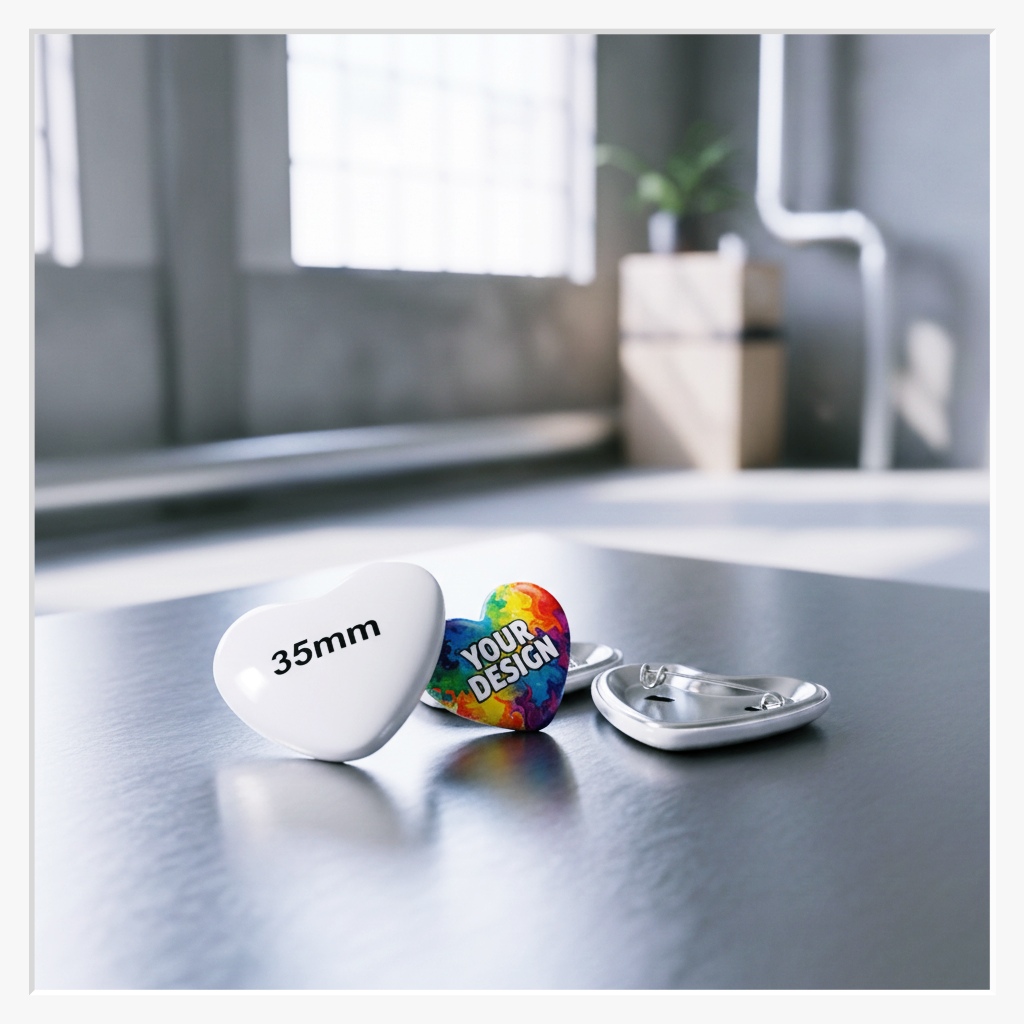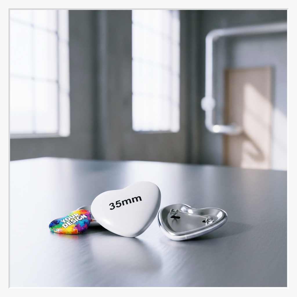 Manche Botschaften brauchen mehr als nur eine runde Form – sie brauchen Gefühl. Unser Herz-Button im Format 35x45 mm ist der absolute Favorit, wenn es um emotionale Anlässe geht. Ob als romantisches Accessoire für Hochzeitsgäste, als herzliches Dankeschön bei Charity-Aktionen oder als liebevolles Give-away zum Valentinstag – dieser Button zaubert jedem ein Lächeln ins Gesicht.