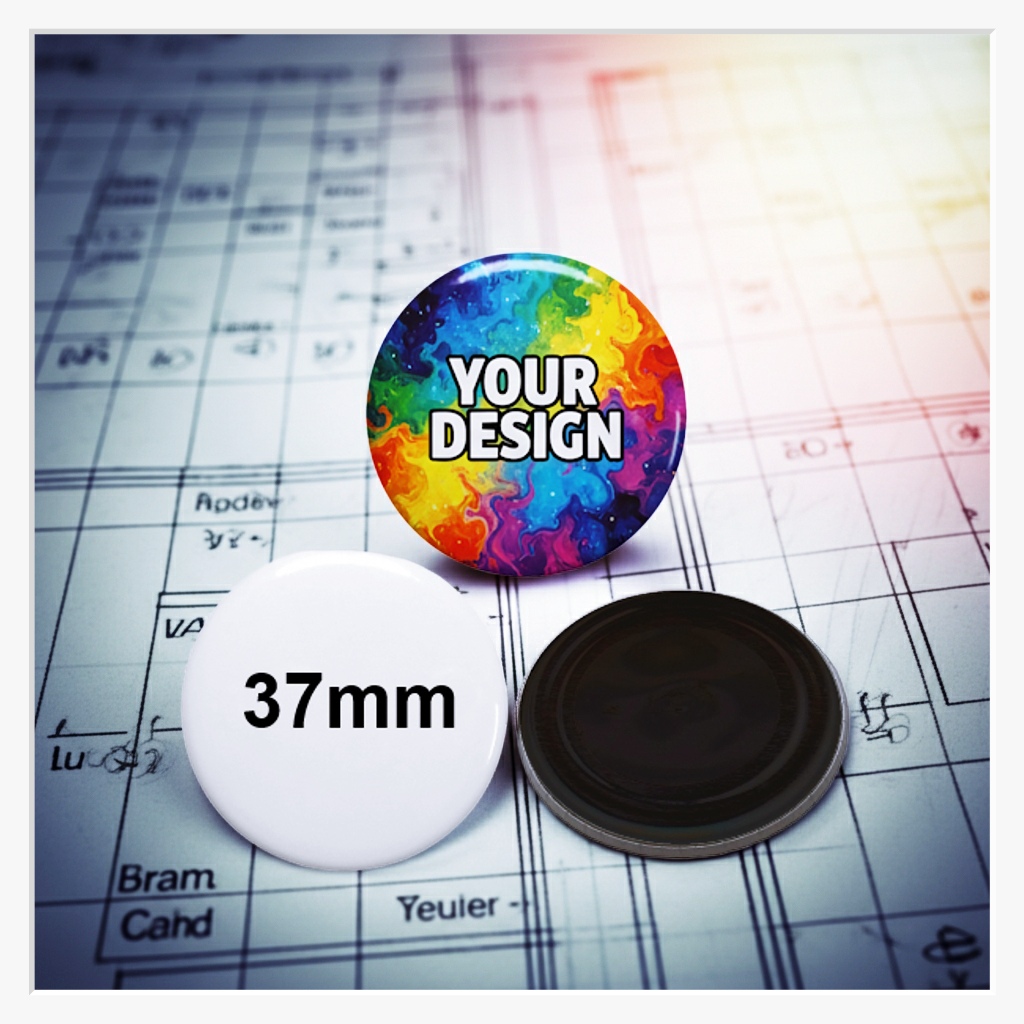 Setzen Sie auf Wertigkeit bis ins kleinste Detail. Unser 37 mm Button mit Metallrückseite und eingelassenem Neodym-Magnet ist die Premium-Lösung für anspruchsvolle Präsentationen. Er vereint die robuste Haptik eines klassischen Metall-Buttons mit der modernen Punkt-Haftkraft eines Neodym-Kerns.