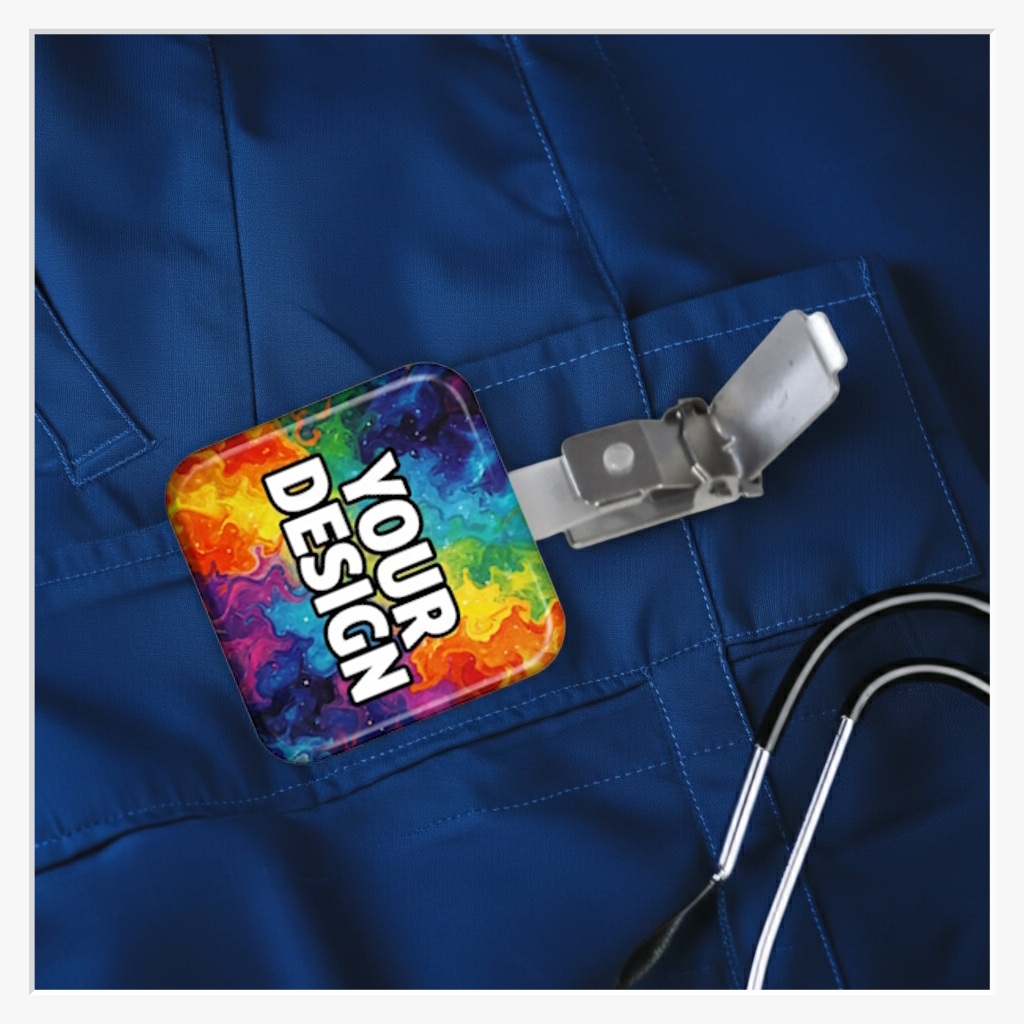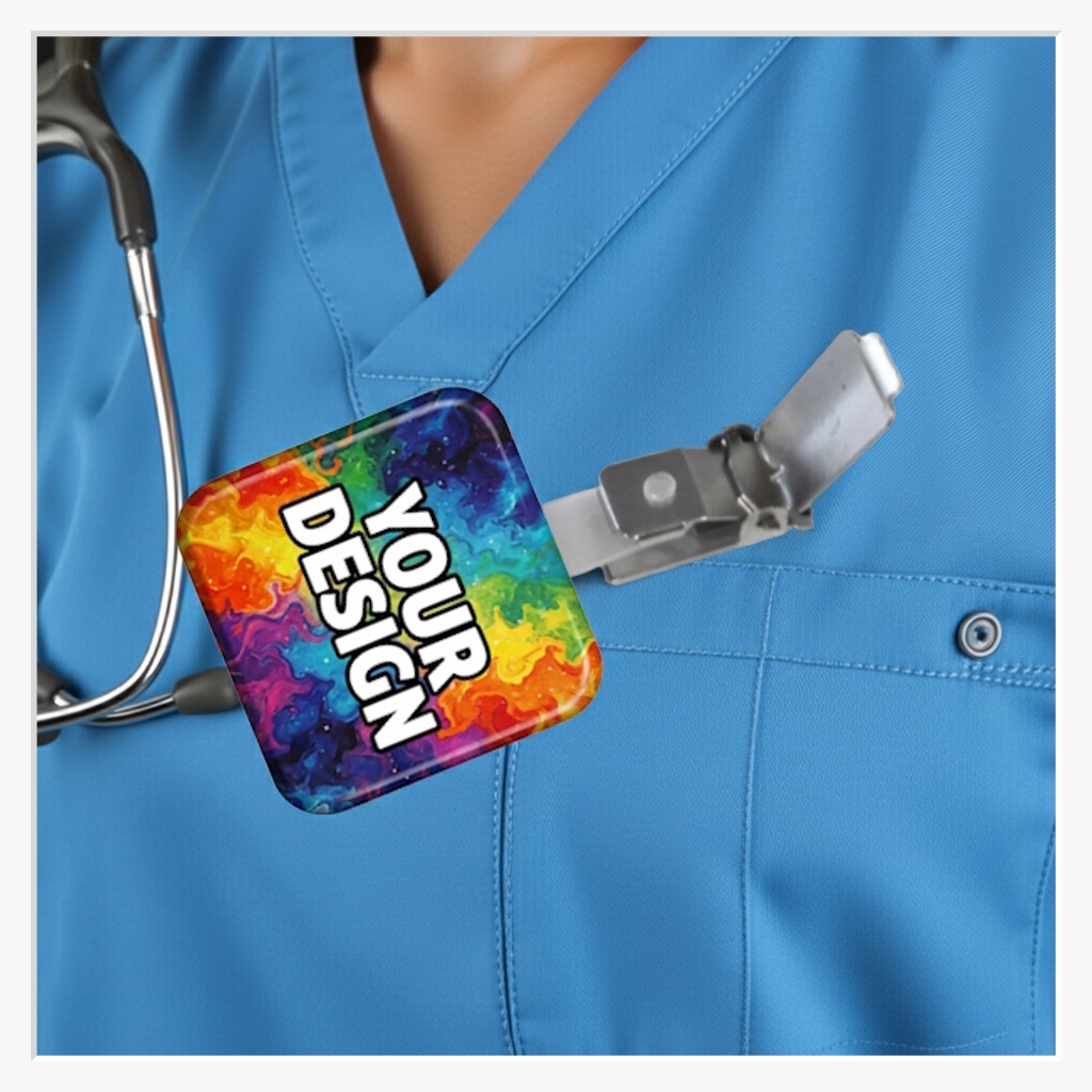 37x37mm Quadrat-Button mit Hosenträger-Clip: Markante Form trifft Power