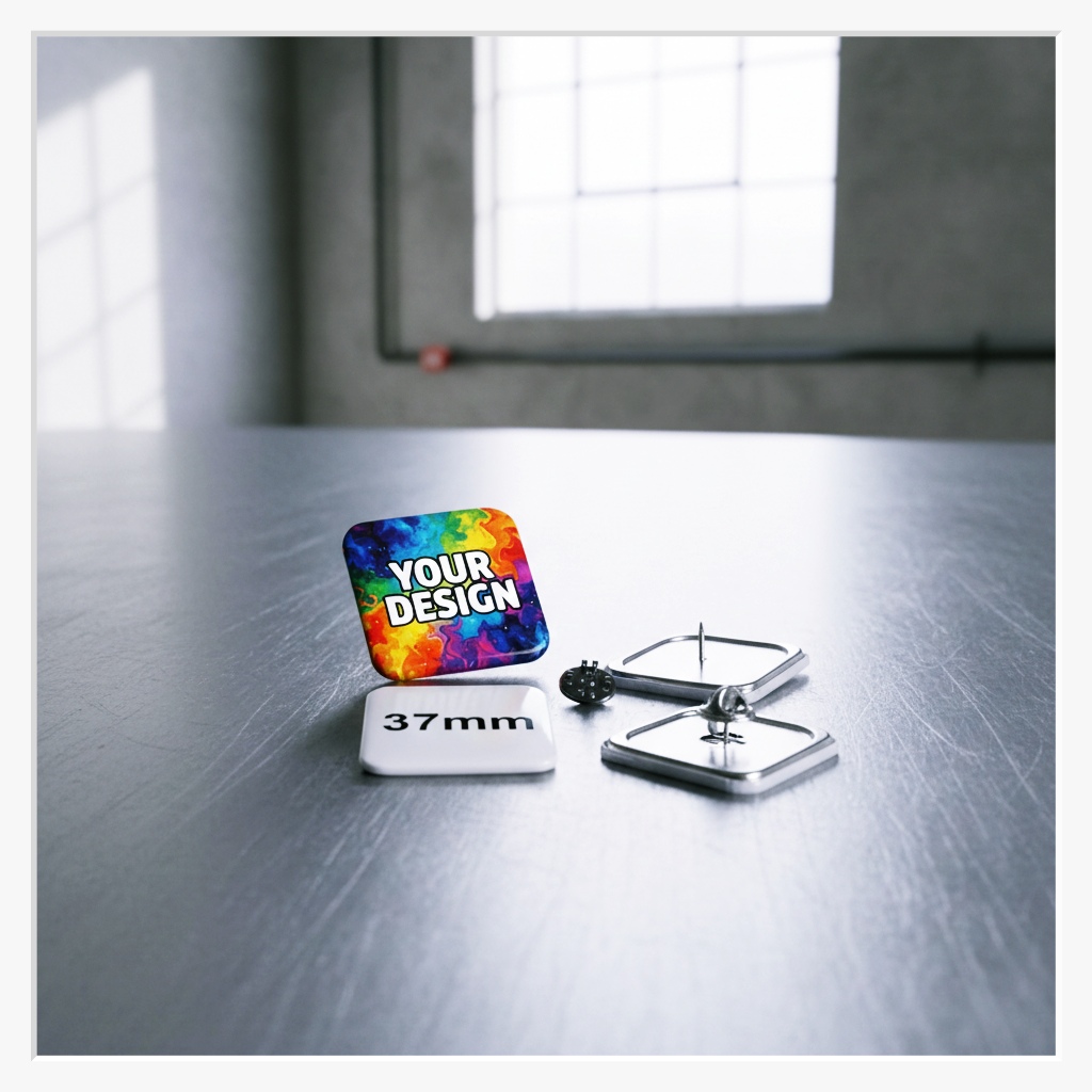 37x37 mm Quadratischer Pin: Klare Kante im Premium-Look