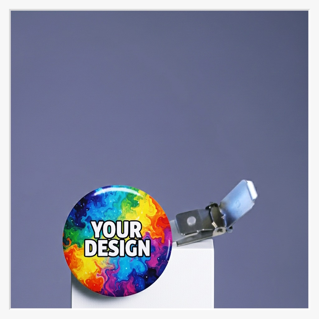 Setzen Sie Ihre Botschaft groß in Szene, ohne sich Gedanken über den Halt machen zu müssen. Der 44 mm Button mit Hosenträger-Clip kombiniert eine großzügige Werbefläche mit einem der stärksten Verschlusssysteme in unserem Sortiment. Der massive Metall-Klemmverschluss greift sicher in das Gewebe ein, ohne es zu beschädigen – die ideale Lösung für alles, was eine Standard-Nadel überfordern würde.