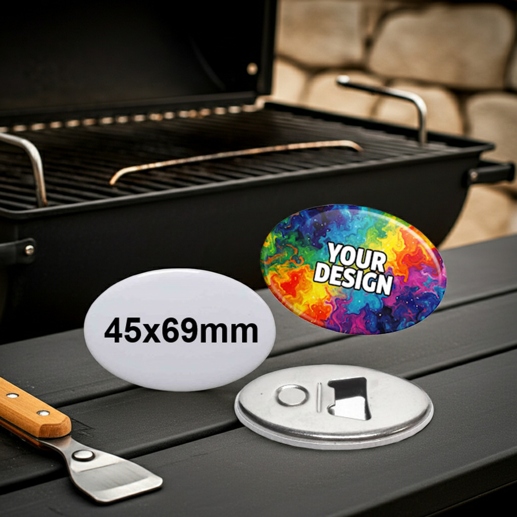 Ovaler Magnet-Flaschenöffner 45x69 mm: Die elegante Kurve am Kühlschrank