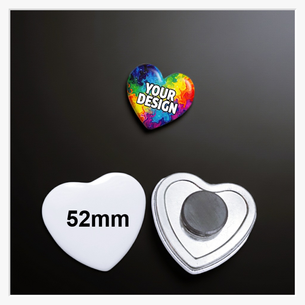 In der Buttonschmiede fertigen wir diese herzlichen Alltagshelfer für Kunden, die das Besondere suchen. Das Herz-Format bietet eine einzigartige Fläche für Fotos, Namen oder kurze Liebesbotschaften und macht jede metallische Oberfläche zu einem Ort voller schöner Erinnerungen.
