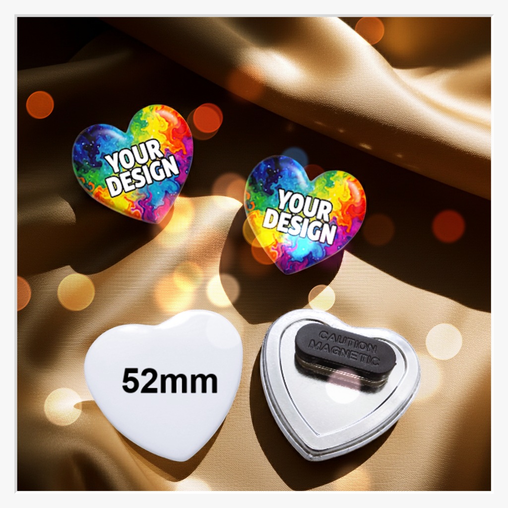 Ein besonderes Format verdient einen besonderen Halt: Unser 52 x 57 mm Herz-Button mit Doppel-Textilmagnet ist die Premium-Lösung für herzliche Botschaften. Während die Herzform Sympathie und Aufmerksamkeit garantiert, sorgt das Doppel-Magnetsystem dafür, dass der Button stets perfekt ausgerichtet bleibt. Kein Verkippen, kein Verdrehen – und das völlig ohne Einstiche oder Beschädigungen an Ihrer Kleidung.