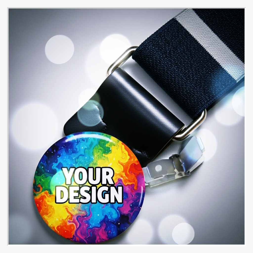 56mm Button mit Hosenträger-Clip: Das Kraftpaket im XXL-Format