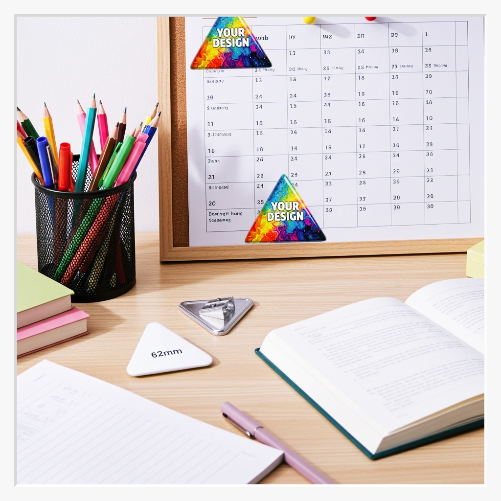 Bringen Sie Dynamik auf den Schreibtisch! Der dreieckige 62x67mm Button mit Doppel-Anspitzer ist das perfekte Werkzeug für Individualisten. Die markante Dreiecksform auf der Vorderseite bietet eine spannende Fläche für Logos, Richtungssymbole oder kreative Grafiken, während das Doppel-Schärfsystem auf der Rückseite zuverlässig für die nötige Schärfe bei allen Stiftstärken sorgt.