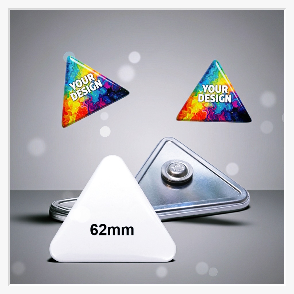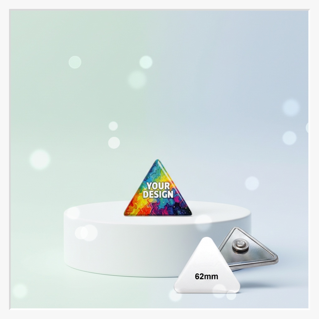 Ein Blickfang mit Ecken und Kanten: Unser 62 x 67 mm Dreieck-Button mit Textilmagnet ist die ideale Wahl für ein modernes und auffälliges Branding. Die ungewöhnliche Dreiecksform (Spitze nach oben) bricht mit klassischen Sehgewohnheiten und bietet eine dynamische Fläche für Logos, Warnhinweise oder kreative Symbole. Dank der löcherfreien Befestigung durch ein kraftvolles Magnetsystem bleibt die Kleidung Ihrer Mitarbeiter oder Gäste vollständig unversehrt.