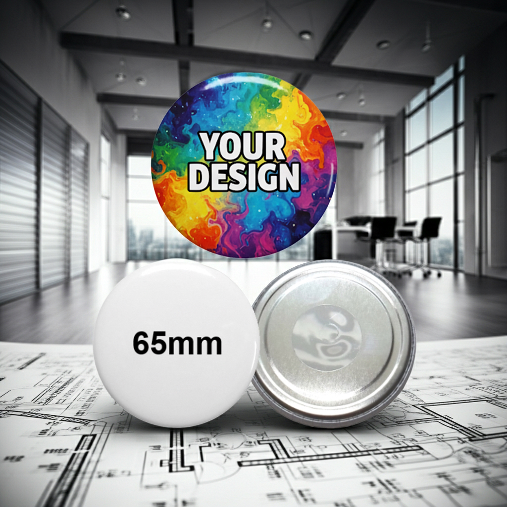Setzen Sie auf maximale visuelle Kraft. Unser 65 mm Button mit Neodym-Magnet ist das unübersehbare Flaggschiff in unserem Sortiment. Er bietet eine gewaltige Gestaltungsfläche, die selbst komplexe Grafiken, detailreiche Panoramen oder großflächige Logos perfekt in Szene setzt – und das bei absolut sicherem und diskretem Halt.