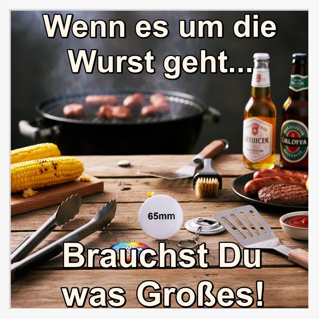 Größer geht es kaum am Schlüsselbund! Unser 65 mm Button-Schlüsselanhänger mit Flaschenöffner ist das ultimative Statement-Gadget. Wenn Du maximale Sichtbarkeit und eine beeindruckende Haptik suchst, ist dieses Format unschlagbar. Es bietet eine riesige Werbefläche, die fast schon Plakat-Charakter hat, kombiniert mit der unschlagbaren Funktionalität eines massiven Kapselhebers.