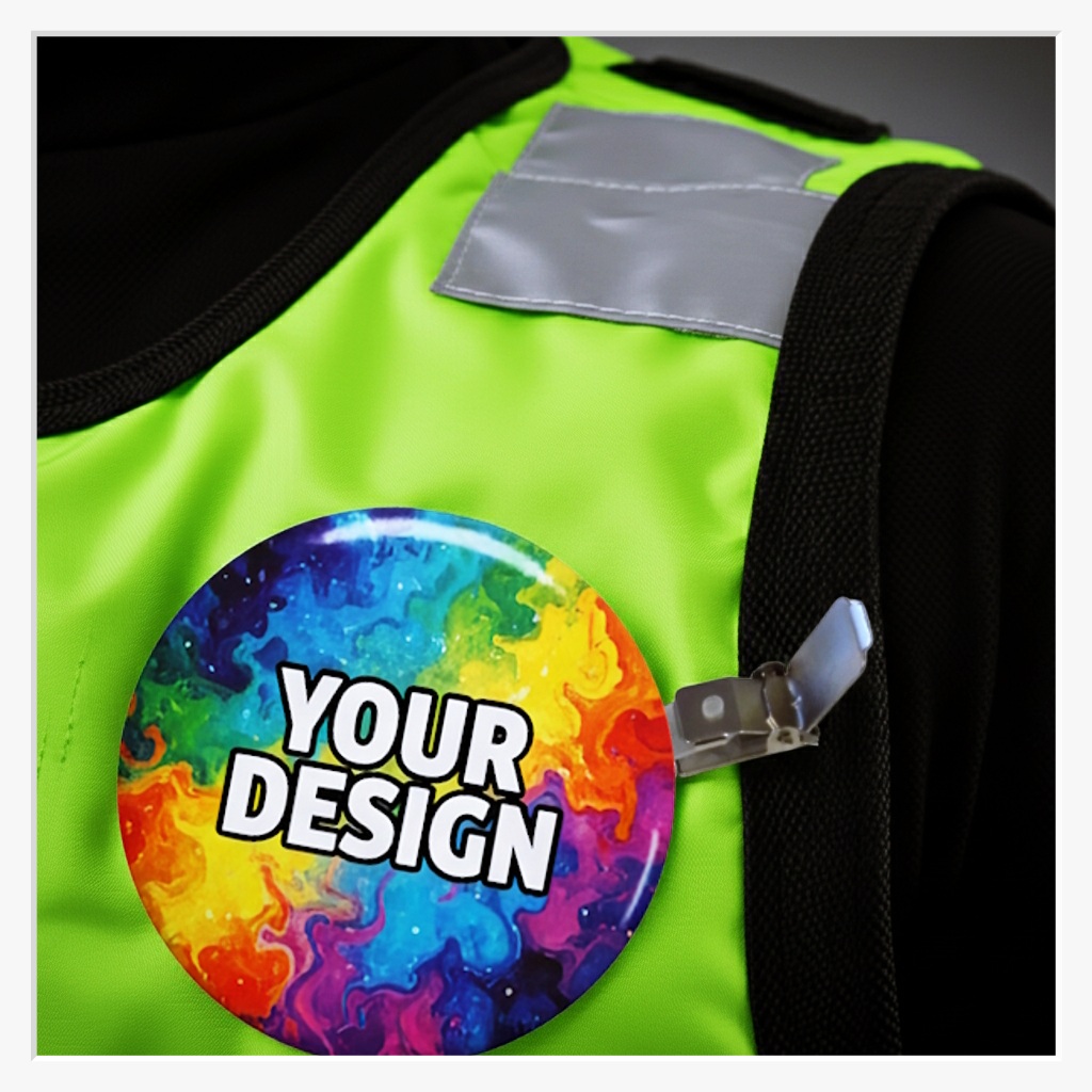 75mm XXL-Button mit Hosenträger-Clip: Sichtbarkeit in einer neuen Dimension