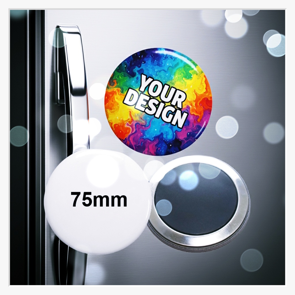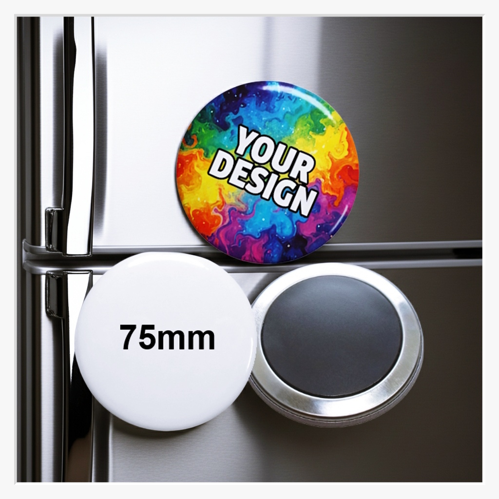 Wenn es auf jedes Detail ankommt und Ihre Botschaft unmöglich übersehen werden darf: Unser 75 mm Button mit Kühlschranksoftmagnet ist das absolute Raumwunder unter den Magneten. Mit seiner gewaltigen XXL-Gestaltungsfläche bietet er Platz für aufwendige Grafiken, Fotocollagen oder großflächige Warn- und Hinweisschilder – bei kompromisslosem Schutz des Untergrunds.