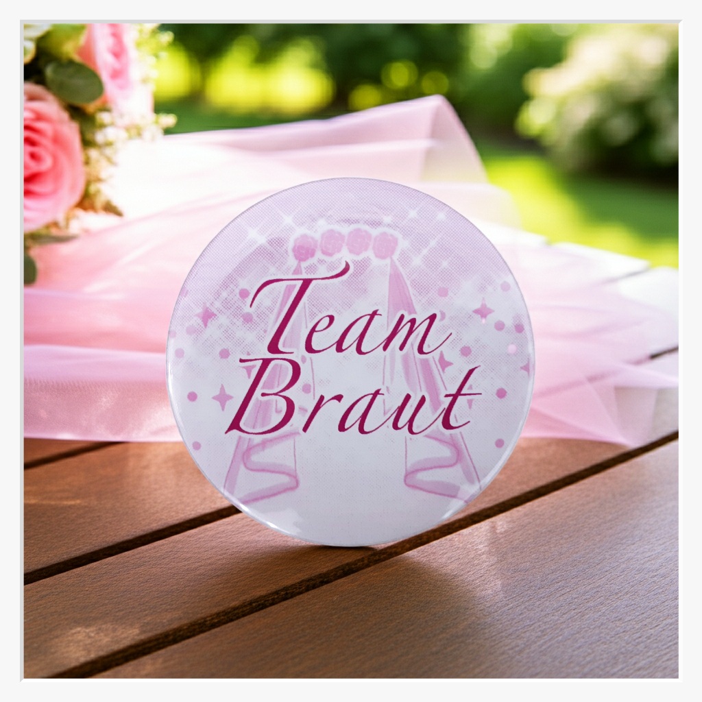 11x Button "Team Braut": Damit das gesamte Team einheitlich glänzt.