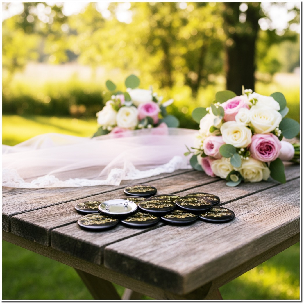Edle JGA Buttons in Schwarz & Gold (Soft-Touch) Es muss nicht immer knallbunt sein! Wenn ihr einen stilvollen, eleganten JGA feiert, ist dieses Set in Schwarz und Gold genau das Richtige. Das filigrane Ornament-Design zieht alle Blicke auf sich. Das absolute Highlight ist jedoch die edle, matte Oberfläche (Soft-Touch-Haptik), die den Buttons einen unglaublich hochwertigen Look verleiht – ganz ohne störende Reflexionen auf euren Erinnerungsfotos! Das 56mm große Komplettset beinhaltet 1x „Braut“ und 11x „Team Braut“.