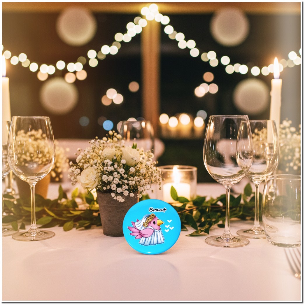 Macht euren JGA zu einem echten Hingucker! Mit unserem 12-teiligen Buttonset im charmanten „Vogel Braut“-Design zeigt ihr sofort, dass ihr zusammengehört. Die Buttons mit einem Durchmesser von 56mm haben genau die richtige Größe, um auf jedem Outfit aufzufallen, ohne dabei zu stören.