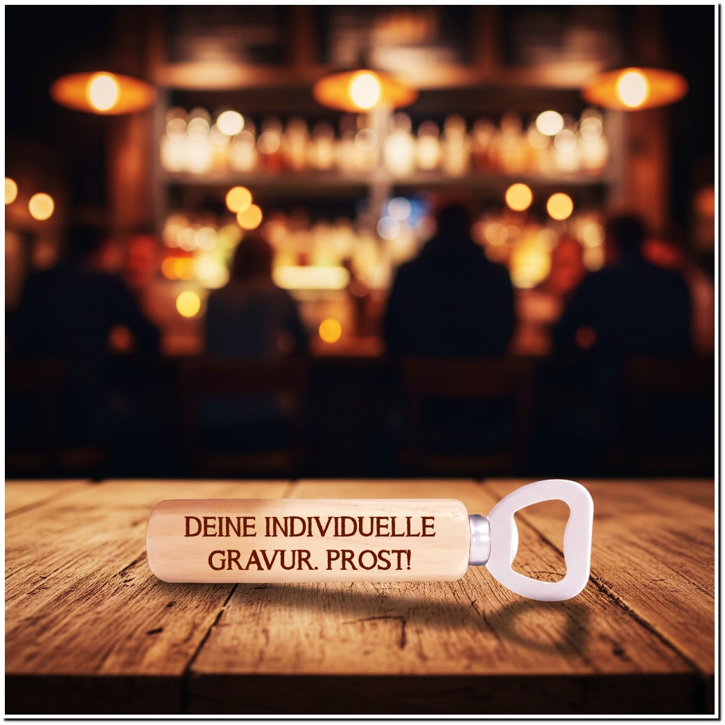 Der Retter auf jeder Grillparty, das perfekte Mitbringsel zum Vatertag oder einfach ein cooles Gadget für deine Küche: Unser Flaschenöffner mit Holzgriff liegt nicht nur super in der Hand, sondern trägt auch genau die Botschaft, die du ihm gibst!