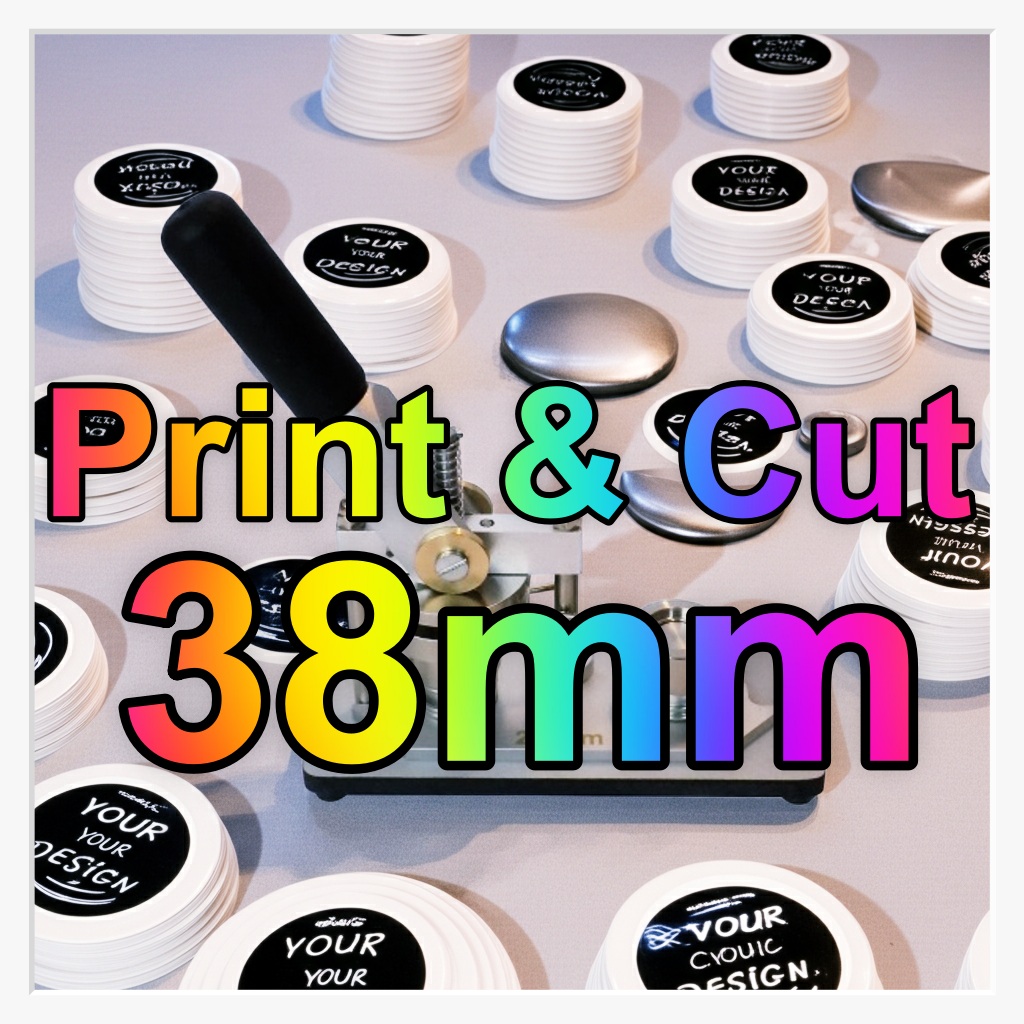 Steigern Sie Ihre Schlagzahl in der Buttonproduktion! Der 38mm Button bietet die perfekte Fläche für Logos und Slogans. Mit unserem Print & Cut Service erhalten Sie pro A2-Druckbogen 77 exakt ausgestanzte Button-Einleger in professioneller Qualität.